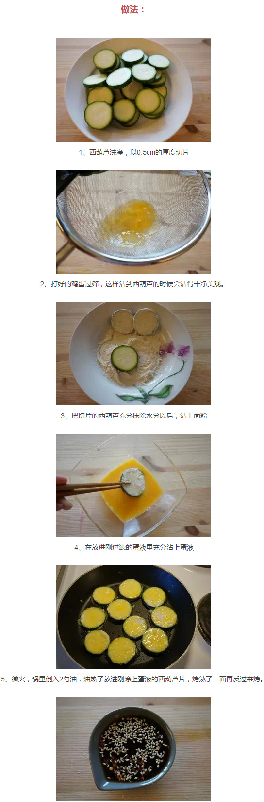 油炸,食品是我国传统的食品之一,因其酥脆可口、香气扑鼻,能增进食欲,所以深受许多成人和儿童的喜爱。可是大部分都是肉类,今天就带你看看那些与众不同的素味炸食,如果你都吃过的话,那可就称得上吃货大神了哦~ 韩式西葫芦饼 主料:西葫芦(1个)、鸡蛋(1个)、面粉(50g)、红辣椒(一个) 调料:盐(少许)、胡椒(少许)、油(适量) 6、一勺酱油加一勺醋加一勺水,另外可以加入芝麻,葱末,辣椒末等搅拌均匀,西葫芦饼的酱料完成,食用的时候西葫芦饼沾上一点酱料食用