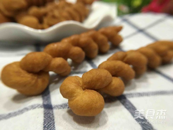 5.将细条搓匀,扭成麻花形状。