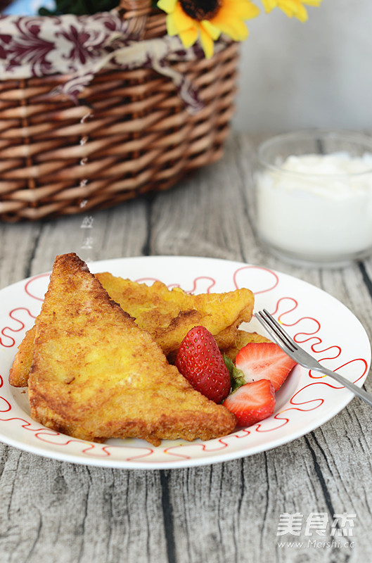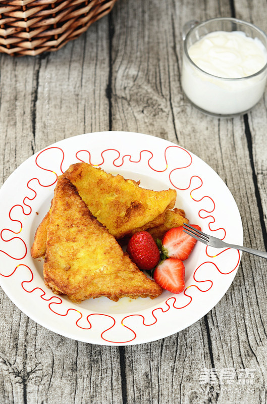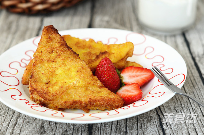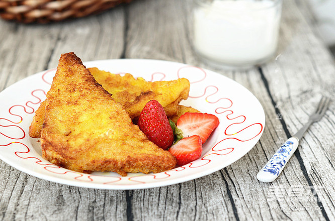 双休日喜欢自己烤个吐司备着,孩子上学的早餐就有着落了。今天这个是全麦吐司,切片后裹蛋液一炸,再来杯牛奶、一些水果,就是一顿营养丰富的早餐啦! 主料 吐司2片 辅料 鸡蛋2个 食用油300克 盐1克 黄金全麦吐司片的做法 1.主料。 2.鸡蛋打入碗中,加1克盐。 3.鸡蛋打散。 4.吐司切去边,斜切成三角形。 5.吐司浸入蛋液。 6.吐司翻面,吸足蛋液。 7.油热后放入吐司,炸。 8.炸至吐司两面金黄即可。 9.营养早餐。 烹饪技巧 吐司炸至时间不要太长,否则很容易炸糊。