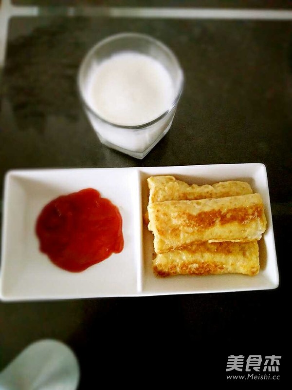 松软的土司卷,在配上番茄酱,特别的美味,适合宝宝吃哦。