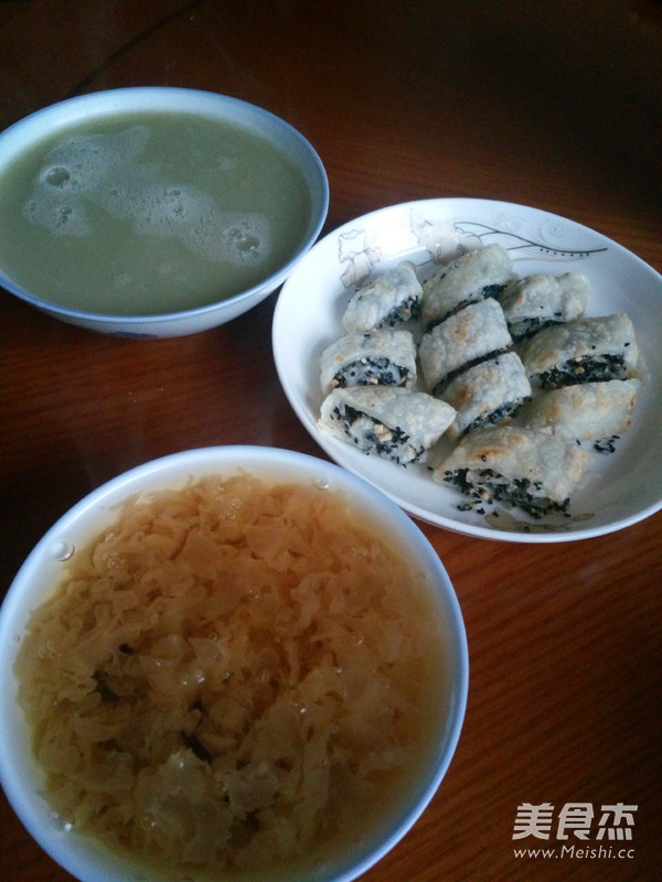不过孕妇好像红糖不能吃吧,特别是早期,所以安全起见我就换成了白砂糖,再配上银耳汤或者绿豆浆就算是简单的早饭了。