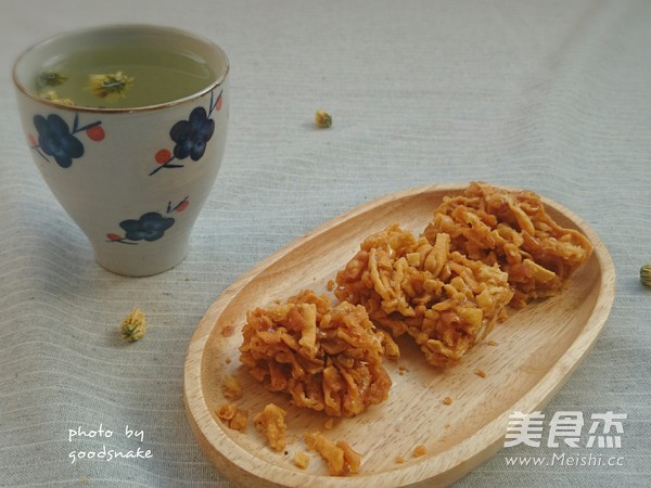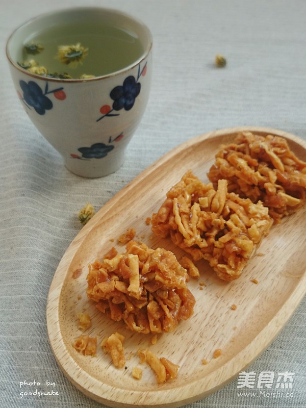 5.锅里放油,加热至150℃,炸至金黄色,用厨房纸吸去多余的油