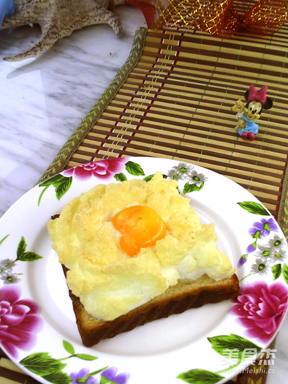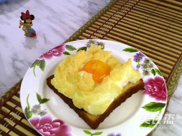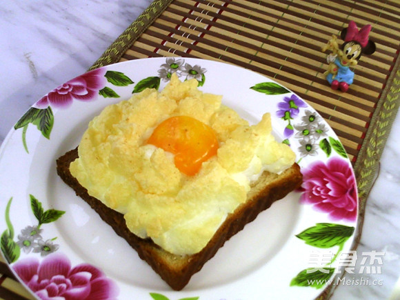 5.将蛋泡堆在土司片上,中央刨个坑。