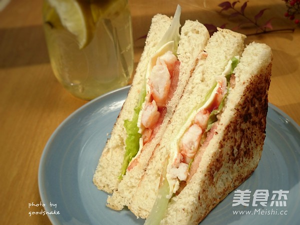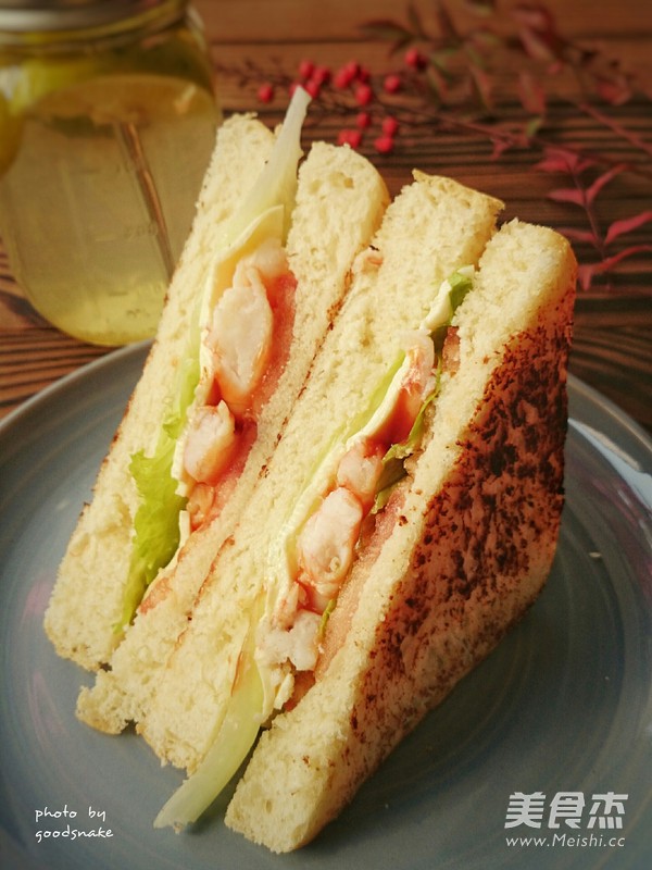 高筋面粉(主面团材料)75克 淡奶油(主面团材料)60克 干酵母(主面团材料)1克 食盐(主面团材料)1克 虾若干 生菜叶若干 番茄1个 切达奶酪片若干 番茄酱若干