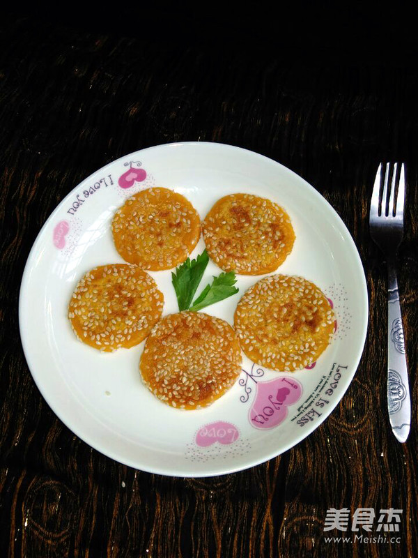 11.启动“煎蛋/薄饼”程序,电饼铛“蜂鸣”提示音响起时,南瓜酒酿饼就好了。盛出装盘即可。