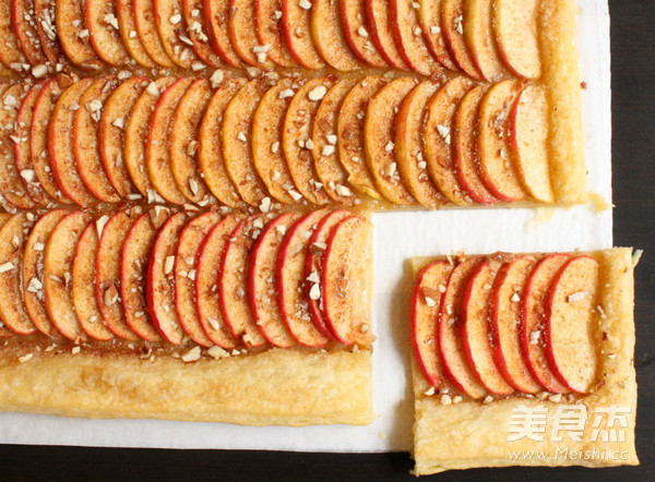 9.烤箱预热至204°,把准备好的烤盘放进去烤15-18分钟,直到酥皮呈金黄色和苹果变软即可