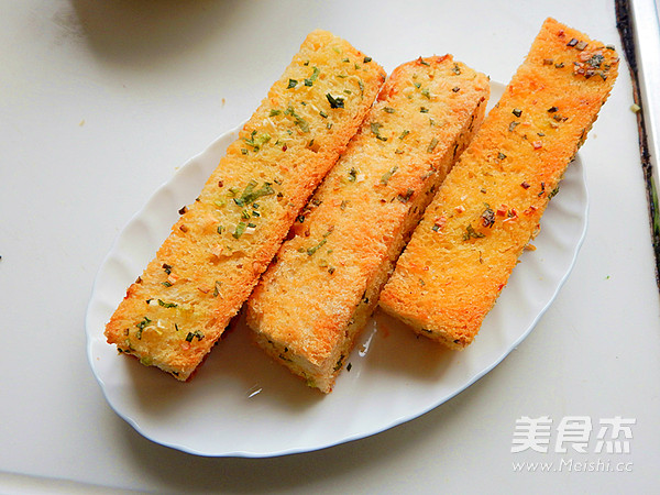 前天做的吐司没吃完,就来做个烤司块当零食吃吃 主料 吐司1个 辅料 黄油120克 盐3克 蒜泥20克 小葱80克 蒜香吐司块的做法 1.自己烤的吐司一个 2.去掉边边切成平整 3.然后切成四条 4.黄油 5.葱及蒜准备好 6.软化的黄油加入蒜泥及小葱 7.加蒜泥 8.搅拌好抹在吐司条上 9.然后抹匀 10.撒上盐 11.放烤箱上180度 12.烤至焦黄 13.好香脆呀 烹饪技巧 吃不完的吐司还可以这样利用呀,非常的好吃