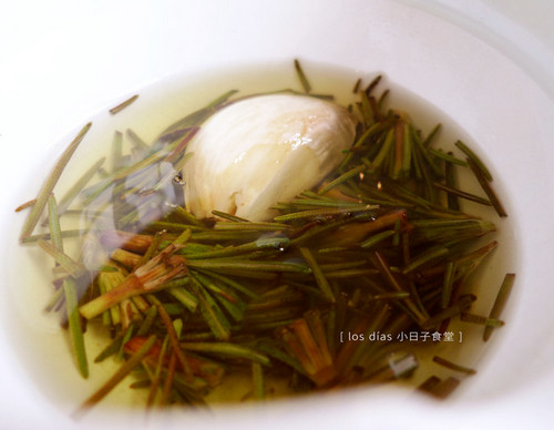 配料:迷迭香2-3支,大蒜1瓣,橄榄油30cc