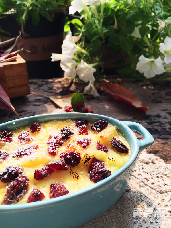 5.烤箱预热180度,水浴,中层烤15到20分钟,布丁液不流动即可,烤好后取出放凉,撒少许糖粉装饰,就美美哒了