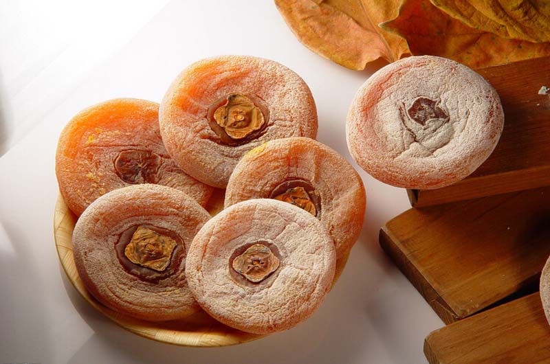 柿子饼的传统做法是将新鲜的柿子去皮然后放在大太阳下面暴晒,待其变焉没有水分的时候,就放在阴暗的地方使其生霜,就像一层白灰,有点像成熟的冬瓜表面的物质,然后就可以食用了。这样的方法做出来的柿子饼比较经典,味道自然,但是晒的时间比较长,我们如果是急于想吃的话,可以这样做。