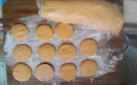 4、将面团搓揉成一个一个小圆饼,饼不能做得太厚,要不然不容易煎熟。因为缺少专业的道具的手艺,所以手工搓出来的饼大小各异。