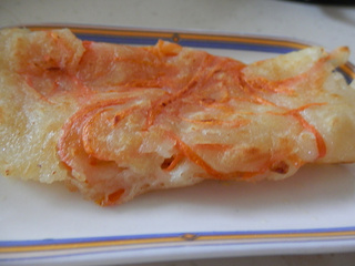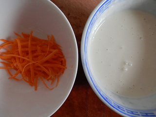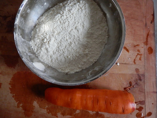胡萝卜就要配合肉吃才好 胡萝卜饼用料工具 主料: 胡萝卜 (适量) 面粉 (适量) 调料: 盐 (少许) 花生油 (适量) 厨具: 平底锅 胡萝卜饼的做法: 1.准备原料 2.胡罗卜切丝,面粉加清水打成稀面糊,加少许盐 3.胡罗卜丝放入稀面糊里 4.搅拌均匀 5.热锅凉油,倒入胡罗卜丝糊 6.一面煎硬后翻面 7.用锅铲把饼压的更薄 8.两面煎至微黄就好了