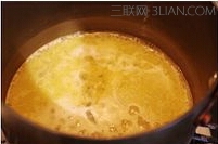 1、黄油切小块,加水、盐、糖混合,放入锅中煮沸后立即关火。