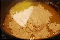 2、立即加入过筛的面粉,搅拌均匀。