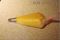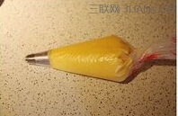 6、取一个大号8齿菊花嘴,将面糊装入裱花袋。