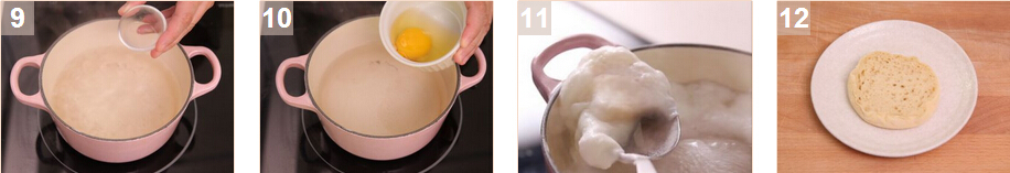 5. 于锅内注入2/3水,加入白醋,煮至水滚开,然后将火调至中低火慢慢滚。把鸡蛋打入小碗内,慢慢将鸡蛋倒进水中(每次制作一只鸡蛋)