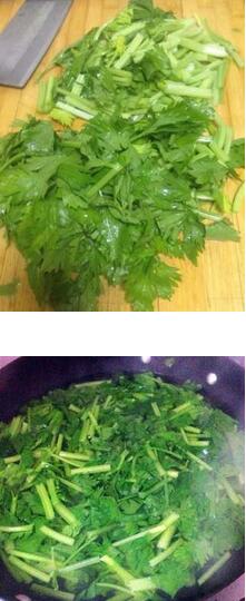 凉拌芹菜粉条的材料:芹菜500克,粉丝50克,黄芥末1勺,花椒1匙,姜粉1匙,蚝油1匙,香醋1勺,生抽1勺 凉拌芹菜粉条的做法: 1.黄芥末加开水和成糊糊,画圈搅拌一会,然后保鲜膜封好放冰箱冷藏。 2.芹菜洗干净切成寸段 3.锅中水开后将芹菜煮熟。可以先放芹菜杆,稍煮下再放叶子,煮的时候不能盖盖子,不然菜就黄了。煮好后捞出挤干水分;再放入粉丝或粉皮煮好捞出。 4从冰箱取出黄芥末,再加入花椒面、姜粉、盐、蚝油、生抽,用热油泼一下,再加入香醋,搅拌均匀后倒入芹菜中搅拌均匀即可。