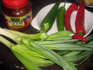 2 原料:青红椒,青蒜,豆豉,郫县豆瓣酱。