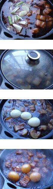 3.炖到一个小时的时候放入鸡蛋,继续小火炖半个小时至汤汁变少,肉酥烂,记得中途要翻动两次。