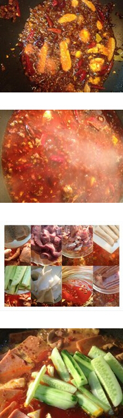 3.调料炒香后加入热水中小火熬制,底料熬好后,分食材易熟度先后分煮,待食材全部下锅,煮开,加入少量盐,出国前撒上葱花就可以了。