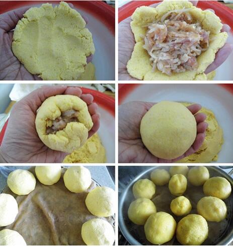 6、做锅烧水,水开后,将捏好的团子开口朝下房子蒸屉上蒸40分钟,就可以出锅了