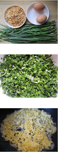2 韭菜洗净切碎。