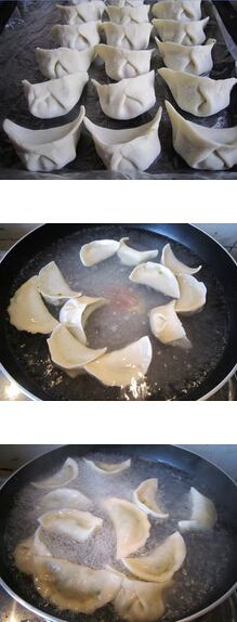 8 锅内水烧开,下入包好的饺子。