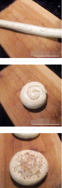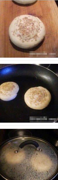 芝麻发面饼的材料:面粉,水,酵母,芝麻,盐 芝麻发面饼的做法: 1、面粉加水和酵母揉成光滑均匀的面团后整成长方形 2、擀开擀薄后抹上一层油再撒上芝麻和一些细盐,卷起来,再用手拉长(这样层次就更薄),盘起来,表面沾上芝麻。用手按扁。放冰箱冷藏发酵一夜 3、第二天一早取出。平底锅刷一层底油。放入面饼 4、倒入1/3杯(约80ML)热水。半焖半煎至饼水收干饼熟透。再将饼煎至两面金黄即可。