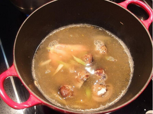 3、使用一个汤锅放入一匙油热锅后,加入葱白爆香,再将海鲜及蛤蜊全都下锅拌炒,炒至海鲜约9分熟时,先起锅放一旁备用,亦可留一半的海鲜在锅里,可增添浓郁的风味,加入高汤煮滚。