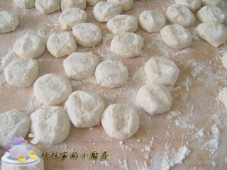 12 清水加入面粉和面,静置饧半小时以上。揉成光滑的面团。