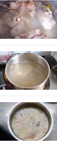 4将焖制好的猪蹄及汤水全部倒入干净的汤锅中,加入,的盐花,用中火熬至粘稠,其间不停的用勺子搅拌,以免糊底