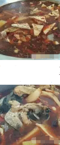 3. 半个小时之后,辣味,麻味都熬制出来了,这时候先下鱼头,鱼排,十分钟之后再下鱼片。鱼片只需三四分钟,就可以了,另外根据个人喜好,你也可以往里面加入一些配菜,比如豆腐干,米豆腐,苕粉等