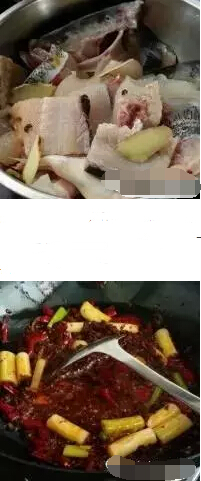 重庆辣子鱼的材料:花鲢一条3斤,麻辣鱼,大葱,干辣椒150克,花椒50克