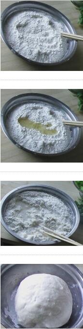 1. 面粉里加三十克食用油拌匀,取三分之一的面,开水烫面,其余的用凉水和面,然后和开水烫面一起和面光滑的面团.因为要薄皮,所以面要和得软一点。和好后静置十五分钟