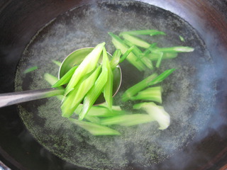 4 将切菜洗净,切段,入开水中烫至断生,过凉沥干。