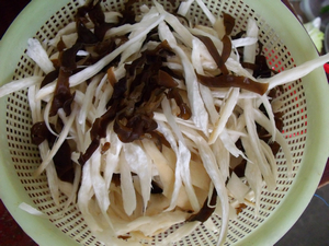 3 青椒切丝。