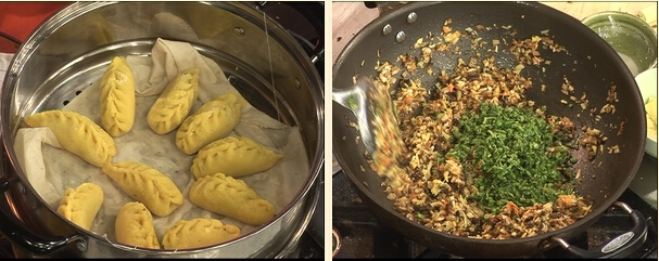 9.像包饺子一样把馅料包进去上锅蒸5分钟就可以吃啦