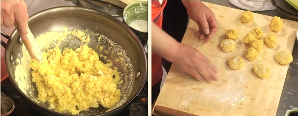 4.案板上用淀粉当薄面把在锅中和好的玉米面揉好