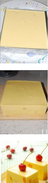 芒果慕斯的材料:芒果250克,牛奶50克,淡奶200克,戚风蛋糕1片,鱼胶片4片(2.5克,一片),细砂糖10克