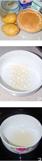 1.鱼胶片用冷水浸泡至软,挤干水份的鱼胶片隔水融化后放凉