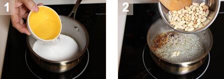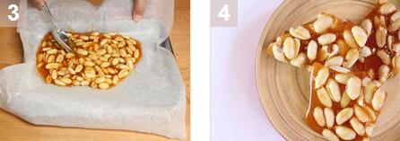 花生脆饼的材料:糖180克,水45克,盐2克,花生100克,油1茶匙 花生脆饼的做法: 1. 在锅中将糖,盐和水混合,高火加热并不停搅拌。 2. 糖会开始融化并慢慢变成焦黄色。当糖开始变色时,加入花生立刻搅匀。 3. 在烤盘中铺上烤纸,将糖浆倒在烤纸上,平铺成薄薄一层。令糖在室温下冷却再切成喜欢的尺寸就好了。