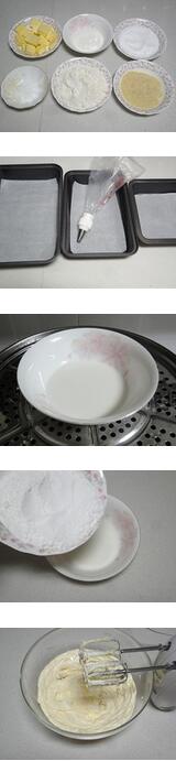 柠檬曲奇的材料:低粉200克,牛奶50克,细砂糖80克,黄油(室温软化)160克,杏仁粉40克,盐2克,烤盘、油纸适量。裱花袋1个,中号8齿裱花嘴1个 美食网