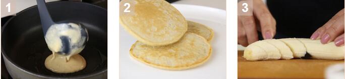 2.于平底锅以中火加热1汤匙油,倒入适量粉浆,将班戟煎至金黄。