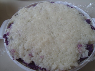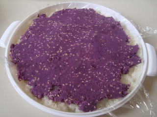 3、紫薯泥和糯米饭都要趁热放在一起,否则黏度不好,容易开裂。
