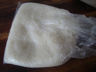 3 蒸好的糯米饭装入保鲜袋,趁热揉一会儿,以增强黏性。