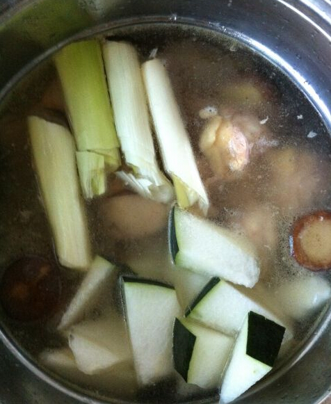 冬瓜鸡肉汤的材料:鸡肉250克,冬瓜200克,葱1根,姜,香菇,白胡椒粉,料酒, 冬瓜鸡肉汤的做法: 1.葱,姜,蒜,料酒,白胡椒粉准备好 2.冬瓜切块,香菇泡发去蒂,鸡肉洗净沥干水分 3.热锅,下鸡块煎(不用放油),煎的过程中放入姜片,香菇,煎到两面都发黄的时候倒入料酒,洒一点白胡椒粉 怎么做好吃 4.换入另一个锅中,把鸡块,姜片,香菇放入锅中,煎出的油扔掉不要,加水,加葱段,冬瓜,蒜 5.大火滚开之后,转小火炖40分钟 6.炖好之后出锅之前再放入盐,白胡椒粉 家常菜谱 学做菜