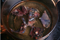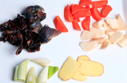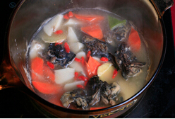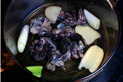 3.锅内重新添水,并放入葱、姜、乌鸡。