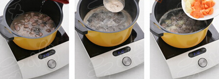 清炖牛腩汤的材料:牛腩300g,土豆80g,胡萝卜30g,姜25g,盐 清炖牛腩汤的做法 1、土豆和胡萝卜去皮后洗净切成滚刀块,牛腩洗净切成约3厘米见方的块,姜切片备用。 2、锅烧热后倒入黑芝麻油,加入姜片,小火把姜片煸到颜色金黄,表面变皱后放入牛腩,快速翻炒几下后加入水。 3、大火煮开后用勺子撇去浮沫,撇沫的时候搅动一牛肉,让底下的血沫可以浮上来。 4、浮沫撇干净之后转中小火煮约一个半小时,加入土豆和胡萝卜,大火煮开后,再转中小火,煮二十分钟左右,盛出后加一点点盐食用即可。