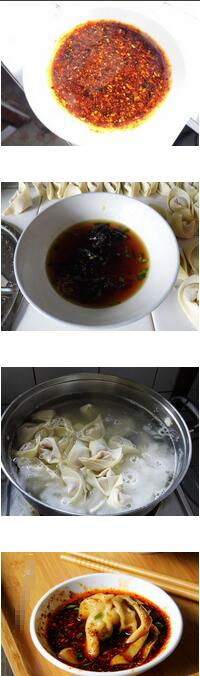 4、做锅烧水,水烧开后下入抄手煮好后捞出蘸酱料食用。
