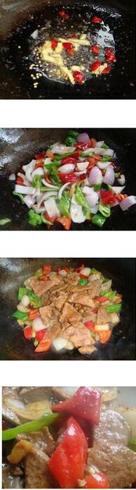 香辣猪肝片的材料:新鲜猪肝,洋葱,青红椒,干辣椒,生姜,淀粉美食网香辣猪肝片的做法:1.把洋葱,青红椒切块,干辣椒,生姜切好,把洗净的猪肝剔除筋后切薄片,加料酒,生抽,胡椒粉,干淀粉上浆拌匀腌制10分钟左右。 2.坐锅倒油油烧热将猪肝倒入快速翻炒,猪肝饱满就赶快盛起,锅里余油爆香干辣椒,生姜,下洋葱,青红椒翻炒,在配料快熟是倒入猪肝用盐,少许生抽,胡椒调味,稍微翻炒就起锅装盘。